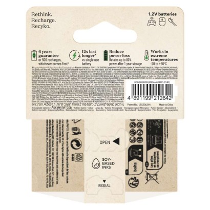 chemické zloženie: NiMH|hmotnosť: 14,5 g|kapacita: 850 mAh|kategória/rada: ReCyko|max. skladovateľnosť: neuvádza sa|možnosť nabíjania: áno|napätie: 1,2 V|počet nabíjacích cyklov: viac ako 500|predajný obal: 2 ks, papierová krabička|prevádzková teplota: -20 °C až +50 °C|rozmer: 10,5 × 44,5 mm|typové označenie: HR03 (mikrotužka, AAA)|veľkosť batérie: AAA|značka: GP