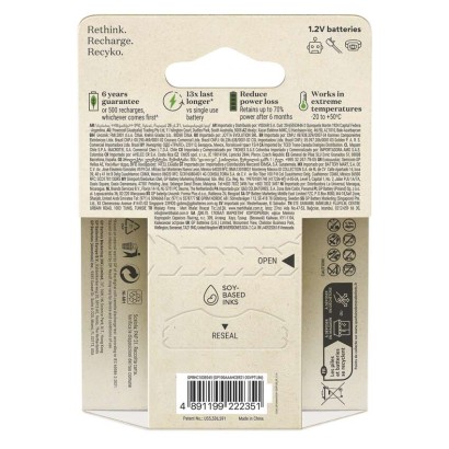chemické zloženie: NiMH|hmotnosť: 15 g|kapacita: 950 mAh|kategória/rada: ReCyko|max. skladovateľnosť: neuvádza sa|možnosť nabíjania: áno|napätie: 1,2 V|počet nabíjacích cyklov: viac ako 500|predajný obal: 6 ks, papierová krabička|prevádzková teplota: -20 °C až +50 °C|rozmer: 10,5 × 44,5 mm|typové označenie: HR03 (mikrotužka, AAA)|veľkosť batérie: AAA|značka: GP