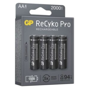 Nabíjacia batéria GP ReCyko Pro Professional (AA) 4 ks chemické zloženie: NiMH|hmotnosť: 30 g|kapacita: 2 000 mAh|kategória/rada: ReCyko Pro|max. skladovateľnosť: neuvádza sa|možnosť nabíjania: áno|napätie: 1,2 V|počet nabíjacích cyklov: viac ako 1 500|predajný obal: 4 ks, papierová krabička|prevádzková teplota: -20 °C až +50 °C|rozmer: 14,5 × 50,5 mm|typové označenie: HR6 (tužka, AA)|veľkosť batérie: AA|značka: GP Mena […] zobraziť celý popis