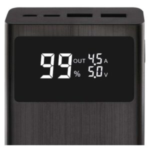 Power bank EMOS BetaQ 20, 20 000 mAh, 22,5 W, čierny auto ON/OFF: áno|doba nabíjania: 7 hodín (s QC)|farba: čierna|hmotnosť: 409 g|kapacita akumulátora: 20 000 mAh/74 Wh|LED indikátor nabíjania: áno|LED indikátor stavu batérie: áno|materiál: ABS plast|max. vstupný výkon: 18 W|max. výstupný výkon: 22,5 W|ochrana proti podbitiu: áno|ochrana proti prebitiu: áno|ochrana proti preťaženiu: áno|ochrana proti skratu: […] zobraziť celý popis