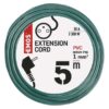 detské clonky: áno|dĺžka: 5 m|farba: zelená|krytie: IP20|materiál zásuvky a vidlice: plast|max. záťaž: 2 300 W|napätie: 250 V~|počet zásuviek: 1|predajný obal: 1 ks, záves|prierez vodiča: 1,0 mm²|prúd: 10 A max.|typ izolácie: PVC|USB výstup: nie|vodič: H05VV-F3G|vypínač: nie
