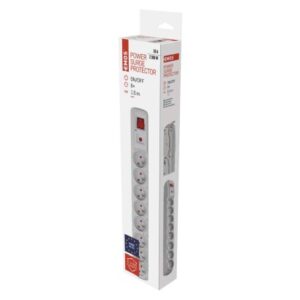 absorpcia energie: 150 J|anténny (koaxiálna ochrana): nie|detské clonky: áno|dĺžka: 1,5 m|doba odozvy: <25 ns|EMI / RFI filter: nie|farba: sivá|garancia: 2 000 €|indikátor prepätia: áno|indikátor zapojenia: nie|istený: poistka s čas. onesk. 10 A/250 V|max. prúdová záťaž: 10 A max.|max. záťaž: 2 300 W|menovité napätie: 250 V~, 50 Hz|ochrana proti preťaženiu: áno|ochranná úroveň Up: 1,3 kV (L/N)|počet zásuviek: 8× 2P + PE|predajný obal: 1 ks, krabica|rozmer: 445 × 54 × 55 mm|rozsah kmitočtu: neuvádza sa|skúšobná vlna U0c: 4 kV|tel. / Fax / DSL ochrana: nie|USB výstup: nie|útlm: neuvádza sa|vodič: H05VV-F3G 1,0 mm²