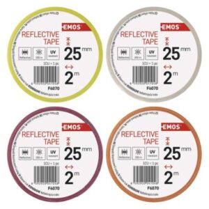 Reflexná páska 25 mm / 2m, 12 ks, display box dĺžka návinu: 2 m|elektrická pevnosť minimálne: neuvádza sa|elektrická pevnosť po vlhku minimálne: neuvádza sa|farba: mix farieb|hrúbka pásky: 0,19 mm|integrovaná textilná sieťka: neuvádza sa|materiál lepidla: kaučuk|odolné UV: áno|odporúčaná skladovacia teplota: -20 °C až +80 °C|pevnosť v ťahu: neuvádza sa|potlač: bez potlače|predajný obal: 12 ks, display box|predĺženie […] zobraziť celý popis