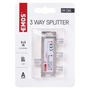 Rozbočovač EM2343 frekvenčný rozsah: 5–2 400 MHz|krytie: IP20|materiál tela rozbočovača: zinkový odliatok|počet vstupov: 1|počet výstupov: 3|použitie: TV + R + SAT|pracovná teplota: -10–+65 °C|predajný obal: 1 ks, krabica|prevedenie: feritový|priechodná pre jednosmerné napätie (power pass): áno, 3×|priechodný útlm: 6 dB|rozmer: 20 × 56 × 25 mm|tlmenie odrazu na vstupe: neuvádza sa|typ konektorov: F|zvlnenie v pásme: neuvádza […] zobraziť celý popis