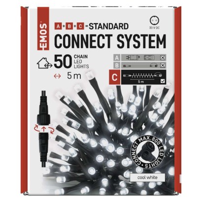 Standard LED spojovacia vianoč. reťaz, 5 m, vonkajšia aj vnútorná, studená biela