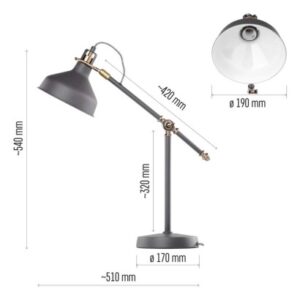 Stolná lampa HARRY, tmavo šedá činiteľ starnutia: neuvádza sa|čip LED: neuvádza sa|dĺžka prívodného kábla: 1,5 m|energetická trieda: neuvádza sa|energetická trieda (od 1.9.2021): neuvádza sa|farba: tmavo šedá|farba svetla: neuvádza sa|index podania farieb (CRI): neuvádza sa|integrovaná nabíjacia batéria: nie|krytie: IP20|materiál: kov|max. výkon: 25 W|napájacie trafo: 220–240 V|napájací zdroj súčasťou balenia: nie|napätie: 220–240 V|obsah ortuti: neuvádza sa|pätica (uchytenie […] zobraziť celý popis