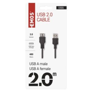 dĺžka: 2 m|farba: čierna|konektory: A vidlica – A zásuvka|materiál: PVC|použitie: nabíjanie/dáta|predajný obal: 1 ks, blister|rýchlosť prenosu dát: 480 Mbit/s (High Speed)|USB verzia: 2.0