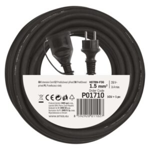 ďalšie funkcie: nie|detské clonky: nie|dĺžka: 10 m|farba: čierna|hmotnosť: neuvádza sa|krytie: IP44|max. zaťaženie navinutého: neuvádza sa|max. zaťaženie rozvinutého: 16 A max./3 680 W|napätie: 230 V|počet zásuviek: 1|predajný obal: 1 ks, sáčok|prierez vodiča: 1,5 mm²|produkt: predlžovací prívod–spojka|prúd: 16 A|rozmer: neuvádza sa|tepelná poistka: nie|typ izolácie: guma/neopren|vodič: H07RN-F3G|záručná doba: 2 roky