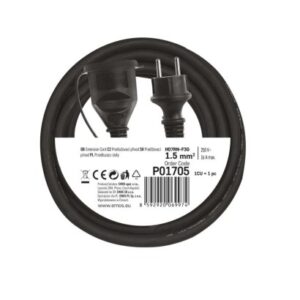ďalšie funkcie: nie|detské clonky: áno|dĺžka: 5 m|farba: čierna|hmotnosť: neuvádza sa|krytie: IP44|max. zaťaženie navinutého: neuvádza sa|max. zaťaženie rozvinutého: 16 A max./3 680 W|napätie: 230 V|počet zásuviek: 1|predajný obal: 1 ks, fólia|prierez vodiča: 1,5 mm²|produkt: predlžovací prívod–spojka|prúd: 16 A|rozmer: neuvádza sa|tepelná poistka: nie|typ izolácie: guma/neopren|vodič: H07RN-F3G|záručná doba: 2 roky