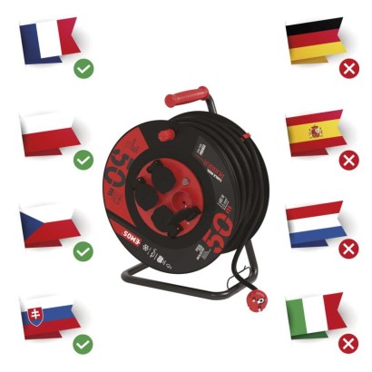 Vonkajší predlžovací kábel na bubne 50 m / 4 zás. / čierny / guma-neoprén / 230V / 2,5 mm2 ďalšie funkcie: nie|detské clonky: nie|dĺžka: 50 m|farba: čierna|hmotnosť: neuvádza sa|krytie: IP44|max. zaťaženie navinutého: 5,6 A max./1 300 W|max. zaťaženie rozvinutého: 16 A max./3 680 W|napätie: 230 V|počet zásuviek: 4|predajný obal: 1 ks, krabica|prierez vodiča: 2,5 mm²|produkt: […] zobraziť celý popis