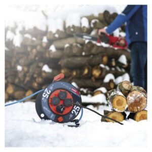 Weatherproof navijak kábla 25 m / 4 zásuvky / modrý / silikónový / 230 V / 1,5 mm2 ďalšie funkcie: vodiace oko, brzda cievky|detské clonky: nie|dĺžka: 25 m|farba: modrá|hmotnosť: 4 460 g|krytie: IP44|max. zaťaženie navinutého: 4,8 A max./1 100 W|max. zaťaženie rozvinutého: 16 A max./3 680 W|napätie: 230 V|počet zásuviek: 4|predajný obal: 1 ks, krabica|prierez […] zobraziť celý popis