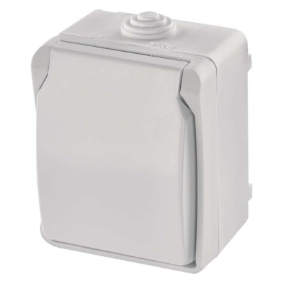 design: FRENCH|farba: biela|krytie: IP54|predajný obal: 1 ks, PE sáčok|prevedenie: 1 nás. vodeodolná|produkt: zásuvka jednonásobná s ochranným kolíkom a viečkom|spôsob montáže: na stenu|typ: 250 V~/16 A max.