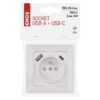 design: FRENCH|farba: biela (lesk)|krytie: IP20|predajný obal: 1 ks, PE sáčok|prevedenie: 1 nás.|produkt: jedna zásuvka s ochranným kolíkom a výstupom USB 3 A max.|spôsob montáže: do krabice (odp. hĺbka min. 60 mm)|typ: 250 V~/16 A max.