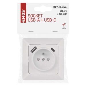 Zásuvka s USB A+USB C, biela design: FRENCH|farba: biela (lesk)|krytie: IP20|predajný obal: 1 ks, PE sáčok|prevedenie: 1 nás.|produkt: jedna zásuvka s ochranným kolíkom a výstupom USB 3 A max.|spôsob montáže: do krabice (odp. hĺbka min. 60 mm)|typ: 250 V~/16 A max. Mena produktu: EUR Cena platí do: 1970-01-01 design: FRENCH|farba: biela (lesk)|krytie: IP20|predajný obal: 1 […] zobraziť celý popis
