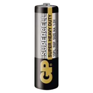 chemické zloženie: zink-uhlíkové|hmotnosť: 14,6 g|kapacita: neuvádza sa|kategória/rada: Supercell|max. skladovateľnosť: 3 roky|možnosť nabíjania: nie|napätie: 1,5 V|počet nabíjacích cyklov: nenabíjacie|predajný obal: 2 ks, fólia|prevádzková teplota: 0 °C až +45 °C|rozmer: 14,5 × 50,5 mm|typové označenie: R6 (tužka, AA)|veľkosť batérie: AA|značka: GP