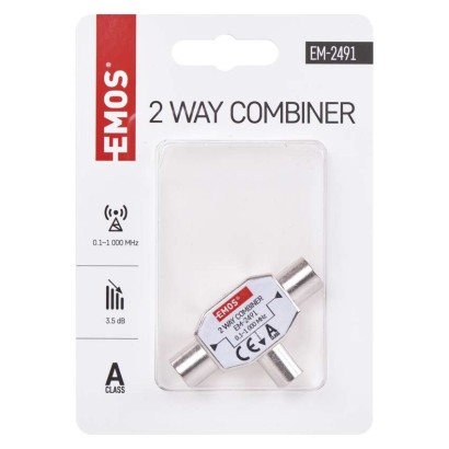 frekvenčný rozsah: 0,1–1 000 MHz|krytie: IP20|materiál tela: zinkový odliatok|počet vstupov: 2|počet výstupov: 1|použiteľný pre zlúčenie satelitného signálu: nie|použitie: TV + R|pracovná teplota: -10–+65 °C|predajný obal: 1 ks, PVC sáčok|prevedenie: univerzálny feritový|priechodná pre jednosmerné napätie (power pass): áno|priechodný útlm: 3,5 dB|produkt: zlučovač SAT+TV|rozmer: 17 × 32 × 23 mm|tlmenie odrazu na vstupe: neuvádza sa|typ konektorov: IEC|zvlnenie v pásme: neuvádza sa
